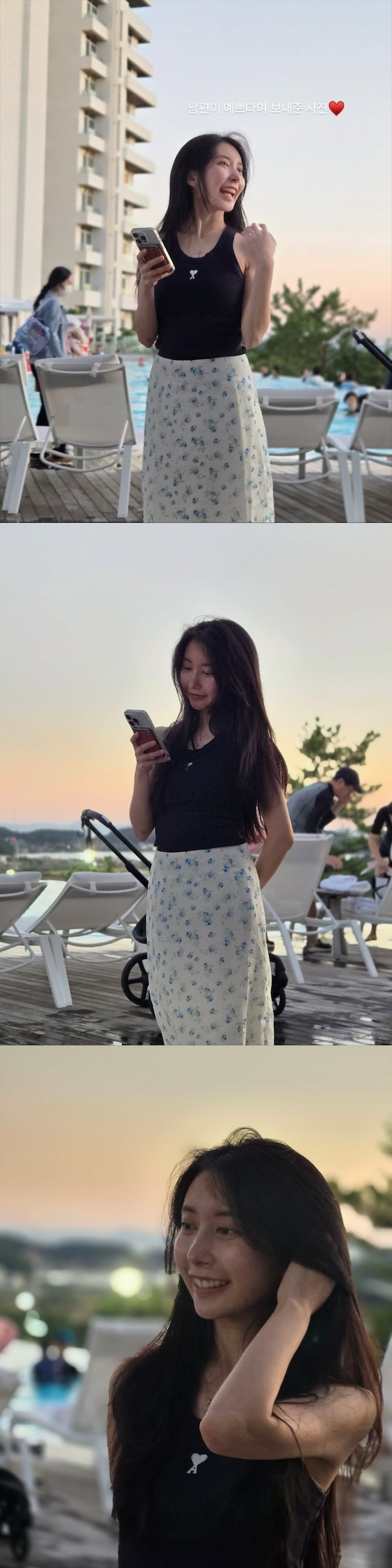 特に1枚目の写真は、「夫がかわいいからと言って送ってくれた写真」というコメント入り。ホテルの屋外プールを背景に明るく笑っている彩音さんの姿が、見る人をも明るい気持ちにする素敵な写真だ。