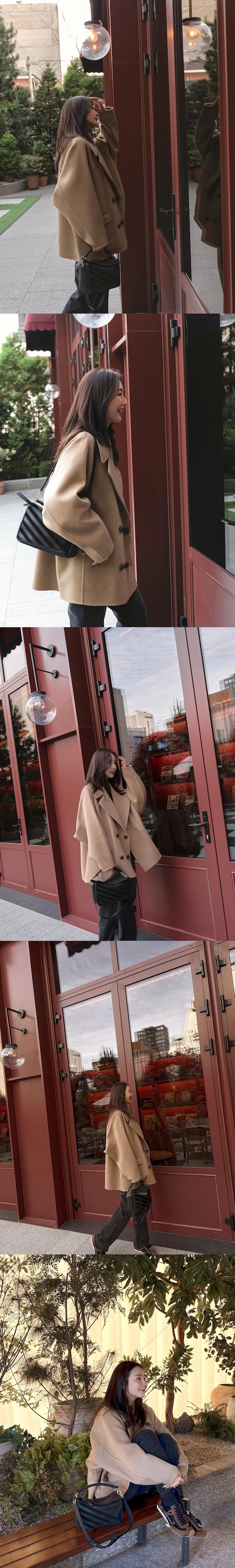 黒のパンツにキャメル色のハーフコートを着た彼女は、ロングヘアでナチュラルな美しさを演出。明るい笑顔とともに秋の情緒を感じさせている。