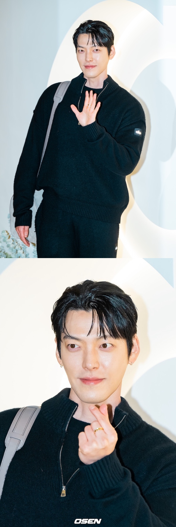 取材陣に向かって手を振ったり、ハートポーズを取るたびに指輪がさりげなくのぞき、最近結婚を発表したシン・ミナとの幸せなニュースを自然と思い起こさせた。落ち着いたブラックルックの中で、指輪は印象的なアクセントになっていた。
