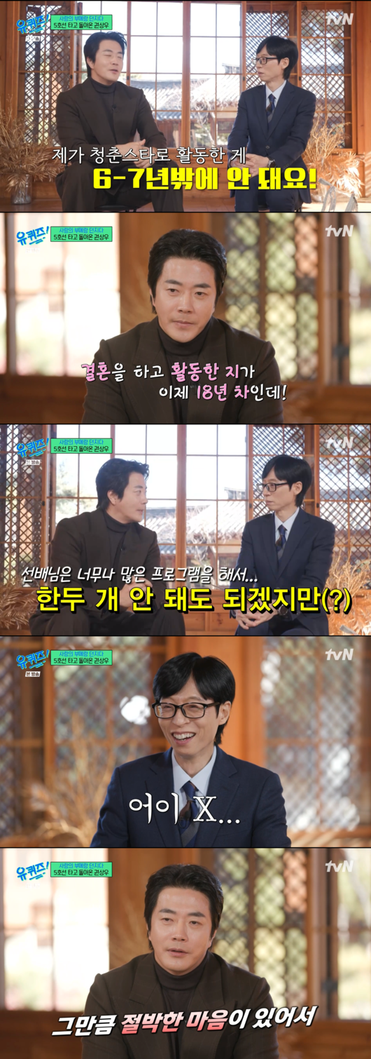 人気トーク番組『ユ・クイズ ON THE BLOCK』に出演した俳優クォン・サンウが、50代に差しかかった俳優としての切実な胸中を語った。