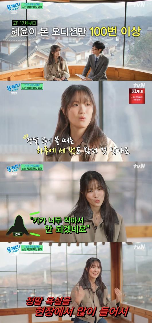 この日、キム・ヘユンはオーディションを100回以上受けたと明かし、「本当に多い時は1日に3回受けたこともあった」と告白。「『今日も落ちに行くんだな』と思いながら、いつも会場に向かっていた」と振り返り、「オーディションのたびに『身長が低すぎてダメなんじゃないか』というコンプレックスを抱えていた」と率直に語った。