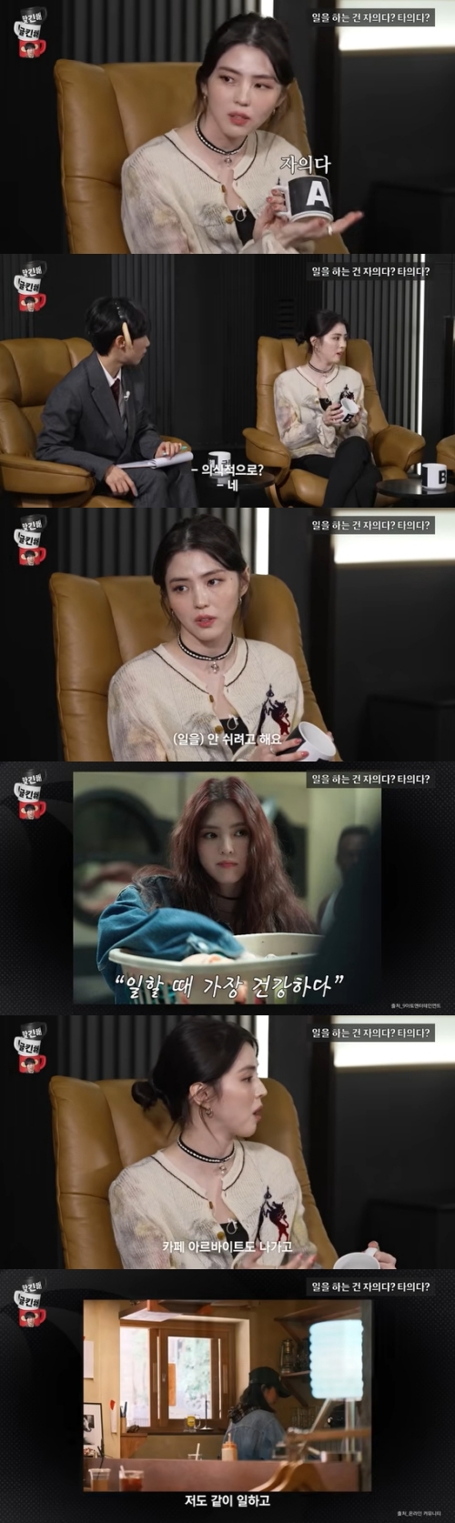 するとハン・ソヒは「もし1週間休めと言われたら、カフェのアルバイトをやる」と明かし、ジェジェは「今もカフェでアルバイトを?」と驚いた様子を見せた。ハン・ソヒは、「時間がある時は、友だちが働いているカフェに行って、一緒に仕事をしている。昔アルバイトをしていた頃も、仕事の効率が上がるのが気持ちよかった。私は自分の意思で仕事をやっていると思う」と付け加えた。